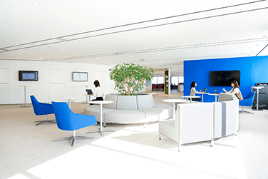 お客様をお迎えするエリアとして、コニカミノルタジャパンの取り組みをお客様に伝えるショールームや商談スペースがあります。また、プロジェクト推進に必要な設備・環境を整え、社内外の人が集い共創できる場としてプロジェクトルームも設置。多様な意見を取り入れた質の高いイノベーションを実現していきます。