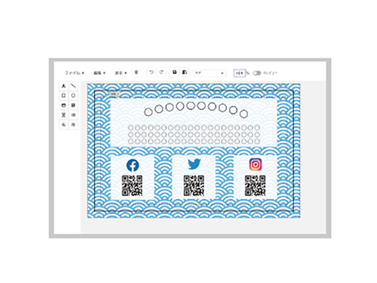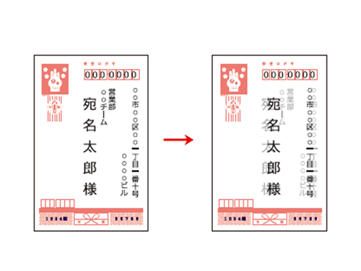 柔軟性のある自動組版機能により、はがきなどで活用できる縦書きの宛名の自動組版や、名前、企業・団体、部署、役職等の名称の自動調整、フォントやサイズ、敬称なども自由にカスタマイズすることができます。郵便バーコード、QRコードをはじめとした様々なバーコード※2も生成できるため、印刷物を活用したマーケティング施策の推進に役立てられます。また、単面・付け合せ(多面)・串刺しなど用途に合わせた多彩な面付設定も可能です。