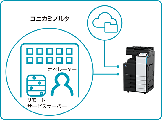 bizhub i シリーズとクラウドサービス「bizhub essentials Remote プリント」を合わせて利用すれば、会社にいなくても、社内の複合機へファイルの出力指示が可能です。連携させたクラウドストレージ上のファイルをどこからでも出力指示できるので、テレワークや外出先でも社内のメンバーに必要な書類を印刷して渡せます。