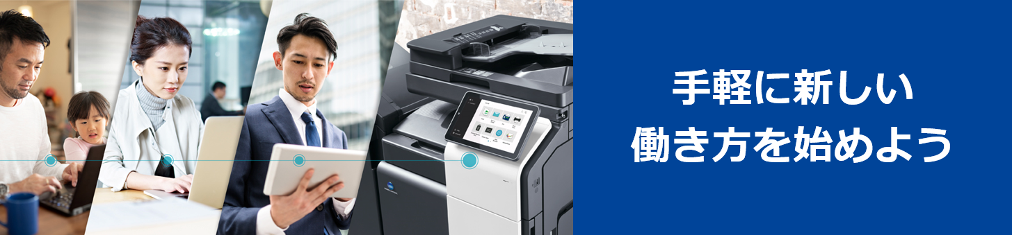 いつでも、どこでも、だれでも働ける環境づくりは高度な ITソリューションを導入しなければならないなど手軽に始められないイメージがありますが、実は普段からオフィスで活用している複合機を使うことでも働き方を変えることができます。