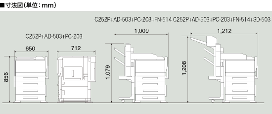 | 装着可能オプション | 排紙トレイ(OT-601)、パンチキット(PK-510)、中綴じ機(SD-503)*2、 メールビンキット(MT-501)*2 |