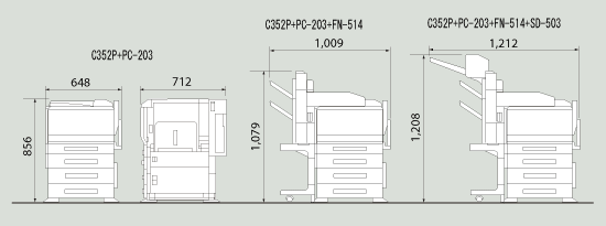 | 機械占有寸法(幅×奥行) | 991×712mm (手差しトレイを開いた状態) | |