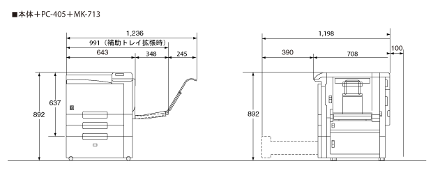 | 機械占有寸法(幅×奥行) | 991×708mm | |