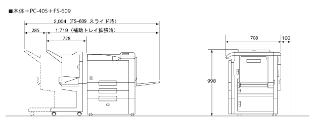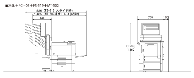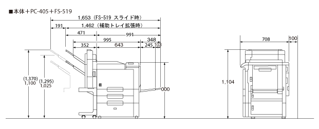 - ( )内の寸法は、FS-519上移動時の最大値です。