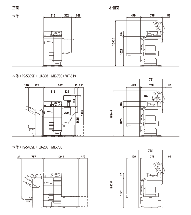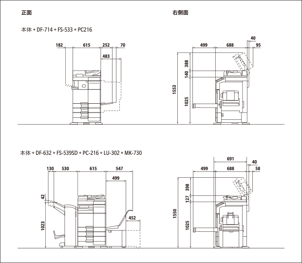 寸法図 - bizhub 750 i / 650 i / 550 i / 450 i / 360 i / 300 i