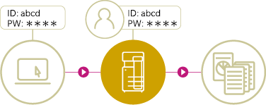 PCのログイン名がセキュリティー印刷の IDとして使用されるため、IDの入力を省略でき、認証をしていなくても簡単にセキュリティー印刷ができます。