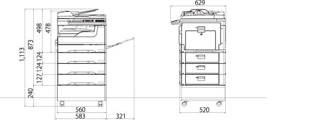 bizhub 1830f+増設給紙ユニット(550枚)×3段+専用デスク(小)