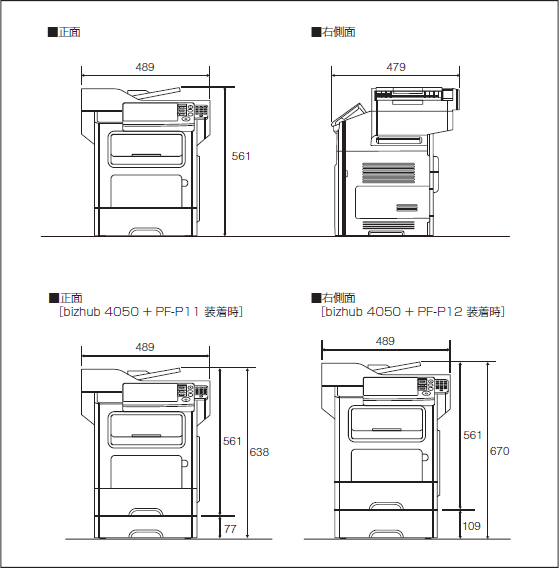 | 大きさ(幅×奥×高) | 489×479×561mm(本体+ADF) | ||