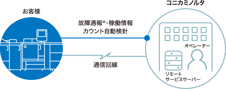 KONICA MINOLTA iCareは、先進の遠隔診断リモート管理プラットフォームにより、故障の未然防止や故障時の迅速な対応を実現。マシンのダウンタイムを最小限に抑えることが可能です。ファームウェアの自動更新やパネル画面をお客様と共有できる遠隔サポートなどのサービスも展開しています。