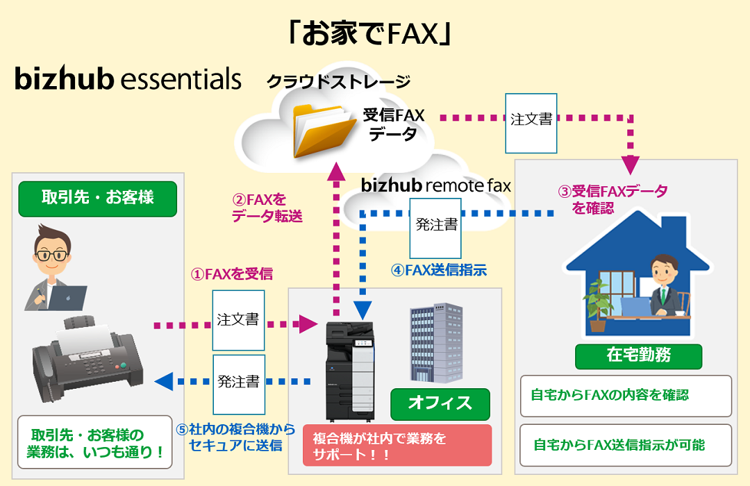 コニカミノルタのbizhub essentialsなら自宅や外出先でFAXの送受信が可能です。