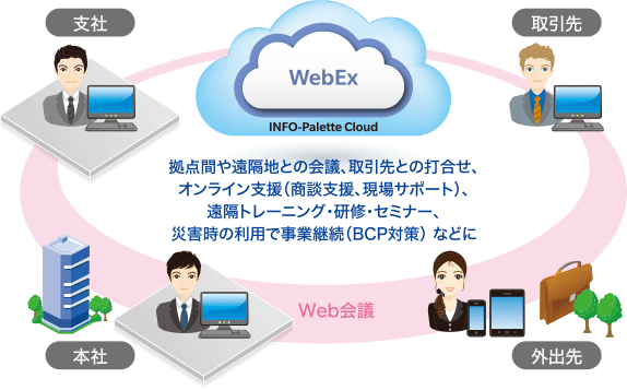 会議のために出社する企業も少なくありません。WebExは社内はもちろん、外出先からでもスマートフォン・タブレット端末などからWeb会議に参加できるクラウドサービスです。