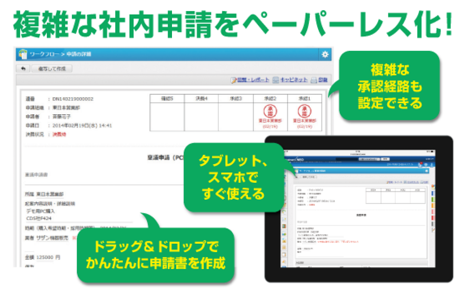 テレワークでは、「稟議書などが紙ベースのため、承認者が社外にいると承認できない」、「申請のために出社しなければいけない」という課題がよく発生します。