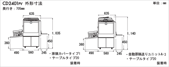 - オプションの原稿カバータイプ1、テーブルタイプ20装着時