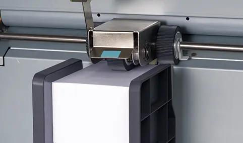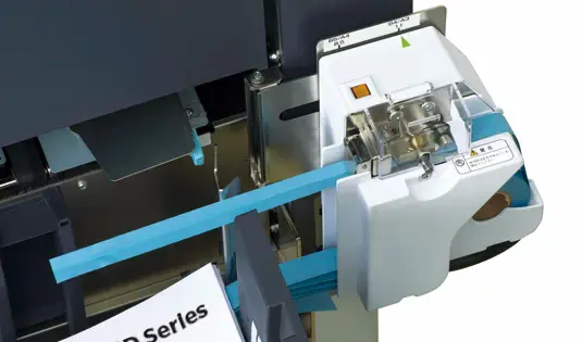 区分けや原稿別プリントで設定した枚数ごとにテープを挿入して仕分けします。