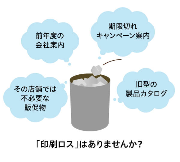 デジタル印刷は、「必要な時」「必要な量」を1部から印刷ができます。最低受注ロットという概念をなくし、印刷ロス低減に貢献が可能です。