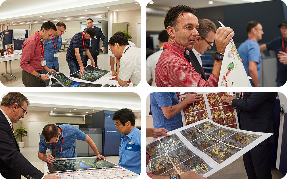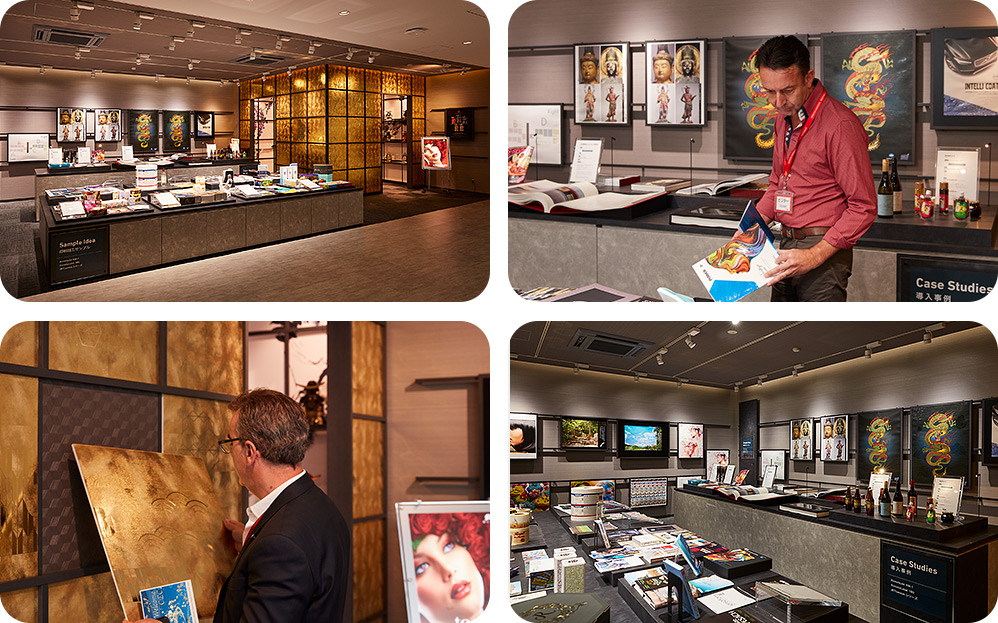わたしたちの製品を体験してもらうだけではなく、この製品を使って何かできるんだろう、どんな新しいものが作れるんだろう、とお客様と一緒に試行錯誤したい、想いをカタチにしたい、という願いのもと開設しました。産業印刷のアプリケーションはますます付加価値が求められる時代です。デジタル化による生産効率の向上やコスト削減などはもちろんのこと、より多くの皆様に手にとって選んでいただけるためにはどうしたらよいか、一緒に道をつくり上げていきましょう。
