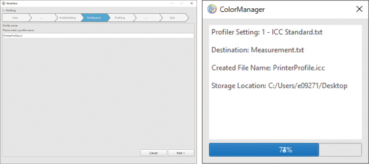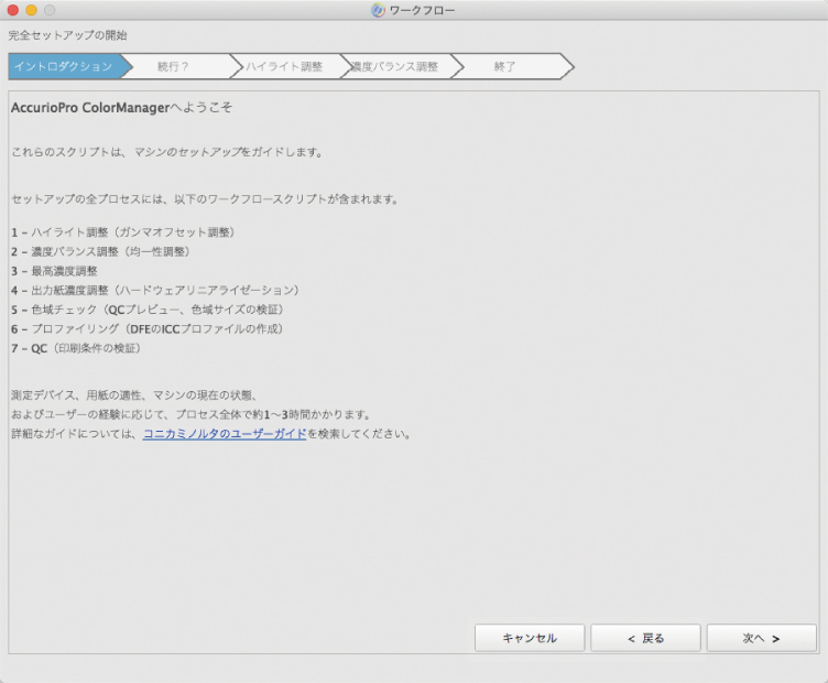 実際に使用する用紙、個々のプリンターエンジンに対応した理想的なICCプロファイルを作成します。プロファイルはコニカミノルタ標準色に対し最適となるように設定されます。 また、以下の設定オプションが用意されています。