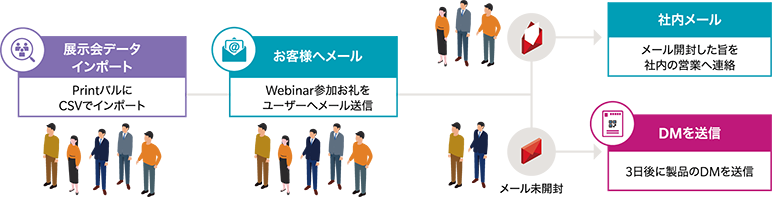 希望するタイミングで情報発信ができ、タイムリーな情報発信ができるデジタルメディア。しかし、メルマガを開封してくれる層は固定化されてしまい、未開封ユーザーには届けたいメッセージを届けにくくなっているのも事実です。Printバルでは未開封ユーザーにはデジタルではなく敢えてアナログのDMを送付する、といったシナリオを作ることができるため、デジタル施策だけでは訴求が難しかった場合でも、効果を最大化できるような施策を実施可能です。