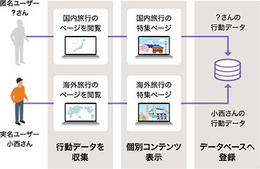 ユーザー情報や行動履歴をもとに、ユーザーが望んているであろうコンテンツを個別に表示することができます。このようにユーザーごとにパーソナライズ化されたコンテンツを表示させることで、コンバージョン率の向上やUIの改善に寄与します。
