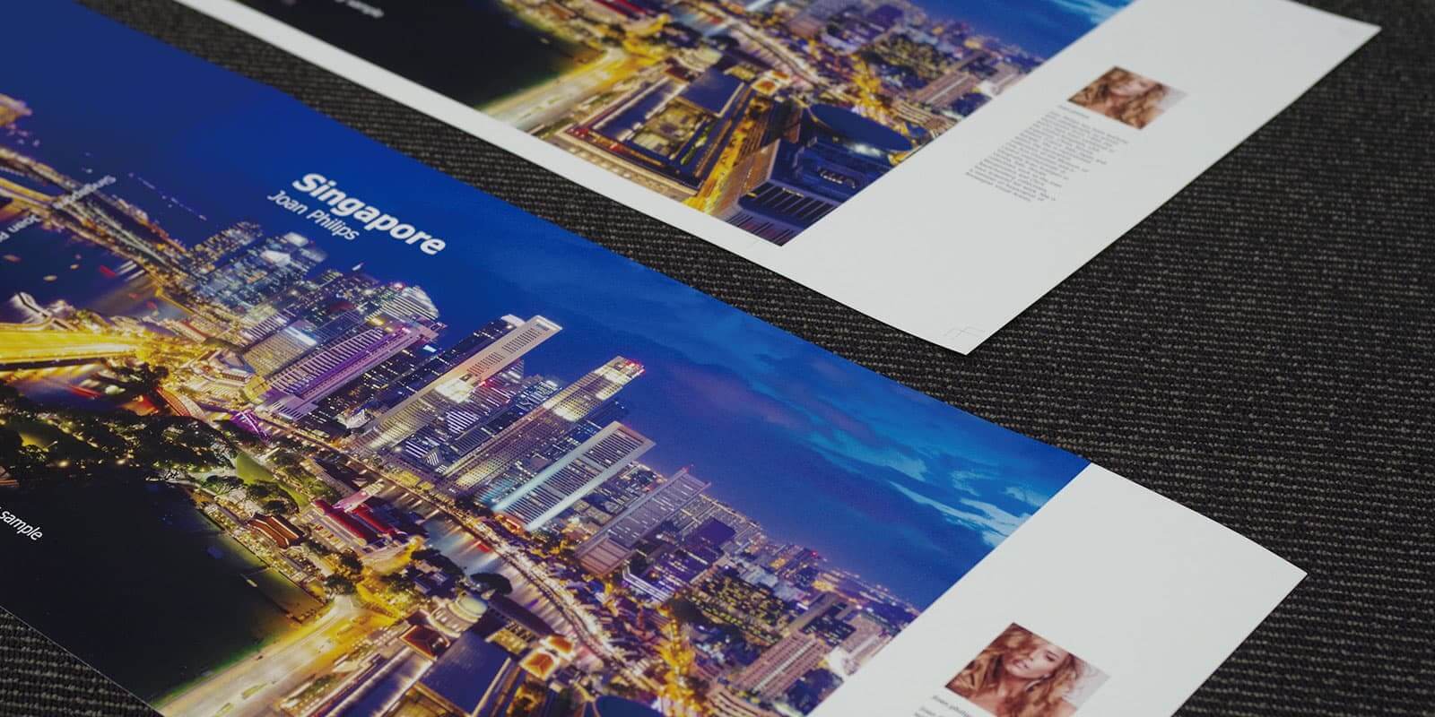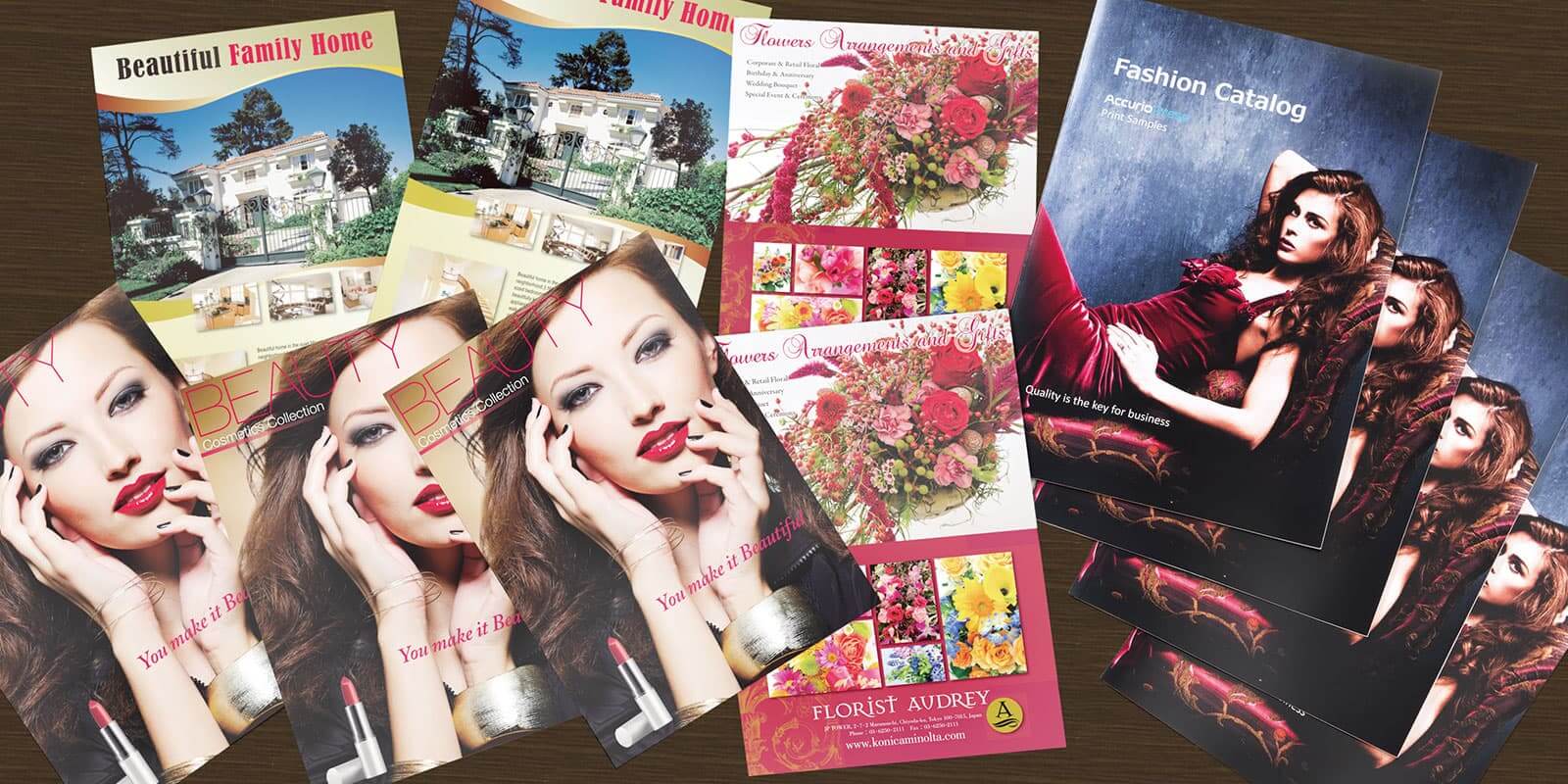 A4やA3サイズ仕上げの折り加工を施します。観音折りカタログをA4サイズ仕上げ、三つ折りカタログをA3仕上げにすることができます。