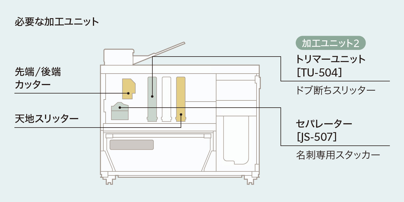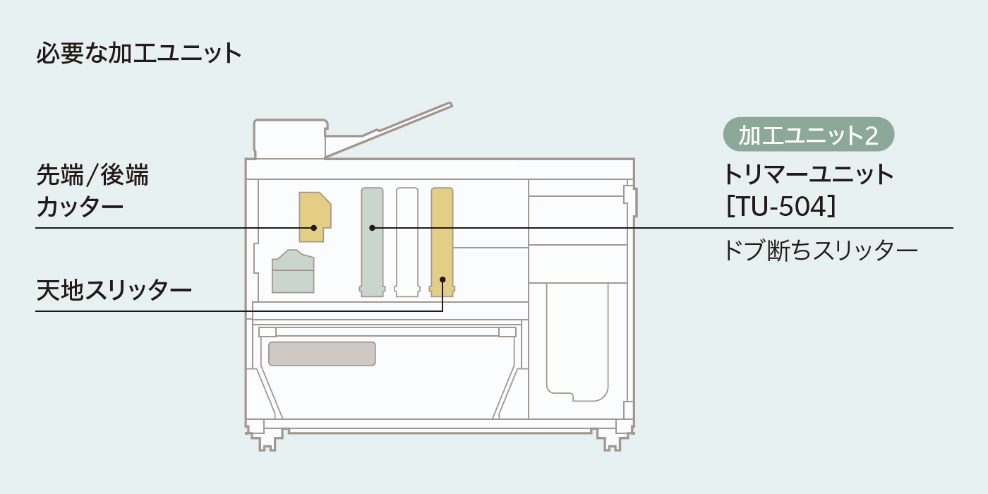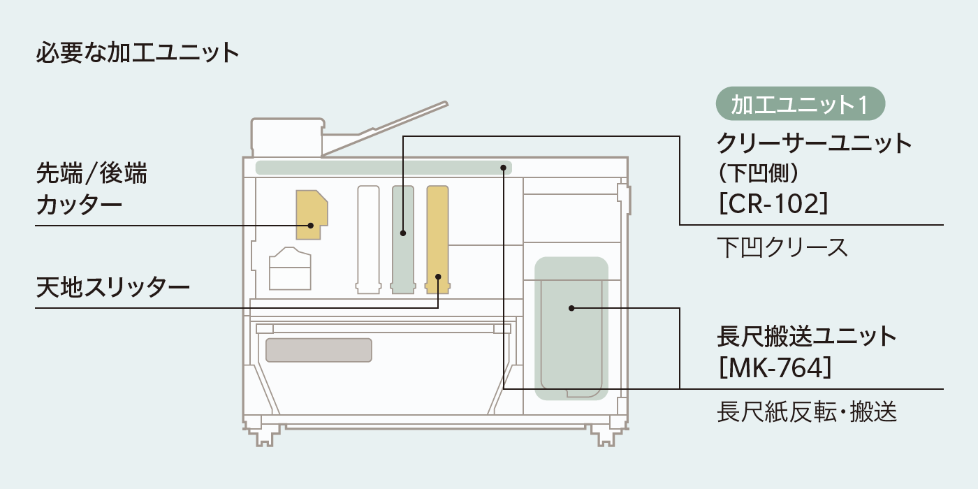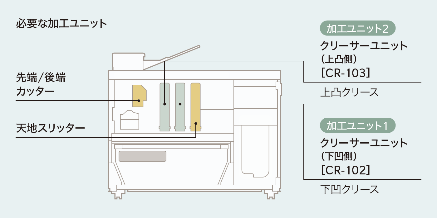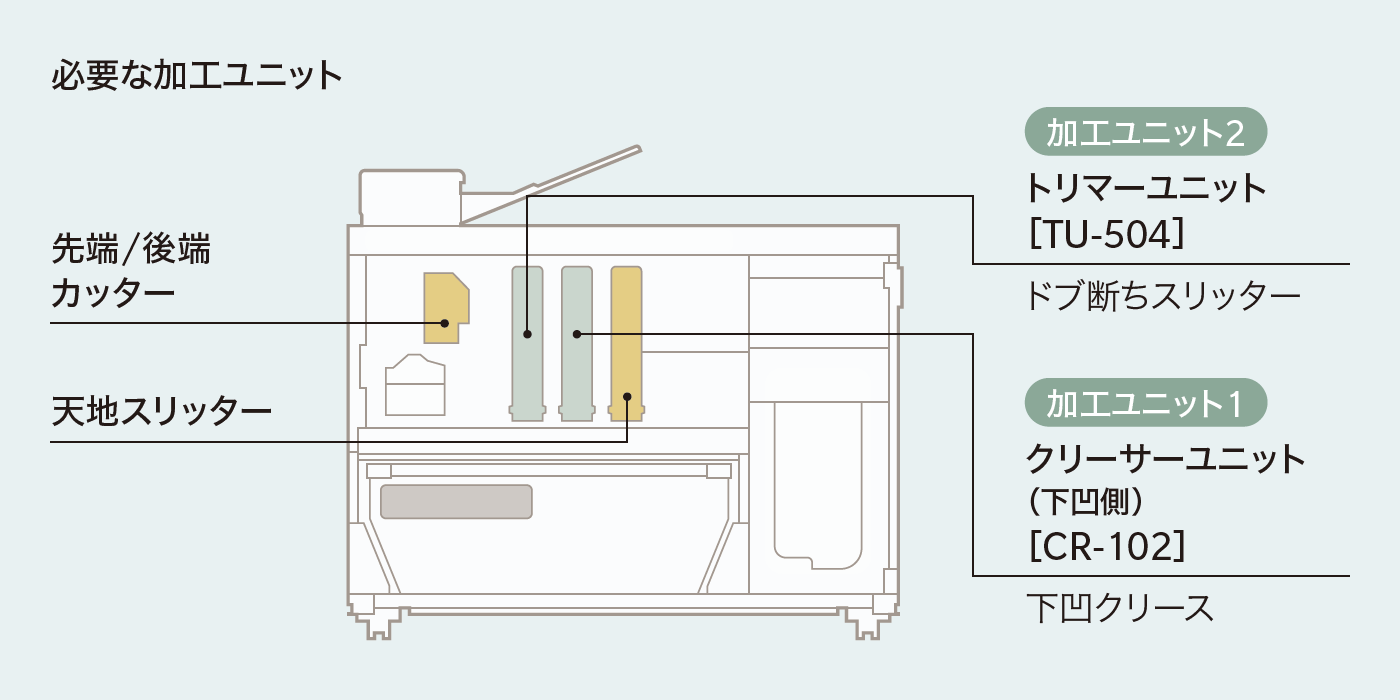 必要な加工ユニットを入れ替えることで多種多様な印刷物を作成できます。