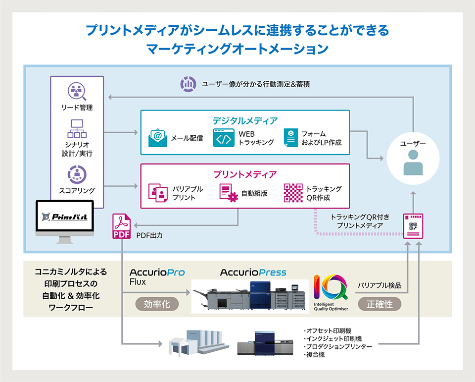 チラシ以外に、WebサイトのLPやメールなど、様々なメディアで集客施策を行っている場合には、MA(マーケティングオートメーションツール)との連携で、ユーザー情報を一元管理し、最適なURLを導き出すのがよいでしょう。情報を一元管理することにより、ユーザーに応じた最適な集客施策がデジタル・アナログ両方で展開できるため、対応コストの削減にもつながります。