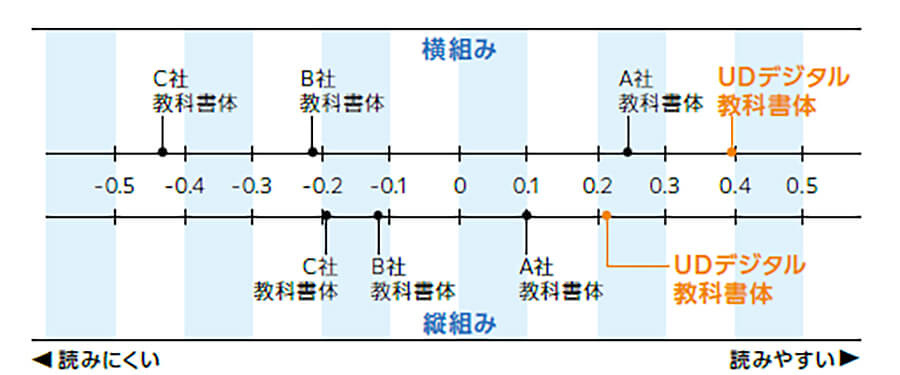 UDデジタル教科書体についても、中野泰志教授および、大阪医科薬科大学LDセンターの奥村智人氏による比較実験や読みやすさの検討などが行われており、眼疾患が無くても読み書きに困難さを抱えるような弱視の方やディスレクシア(読み書き障害)の方に対しても、見やすさ・読みやすさの評価を得ていることが確認できています。
