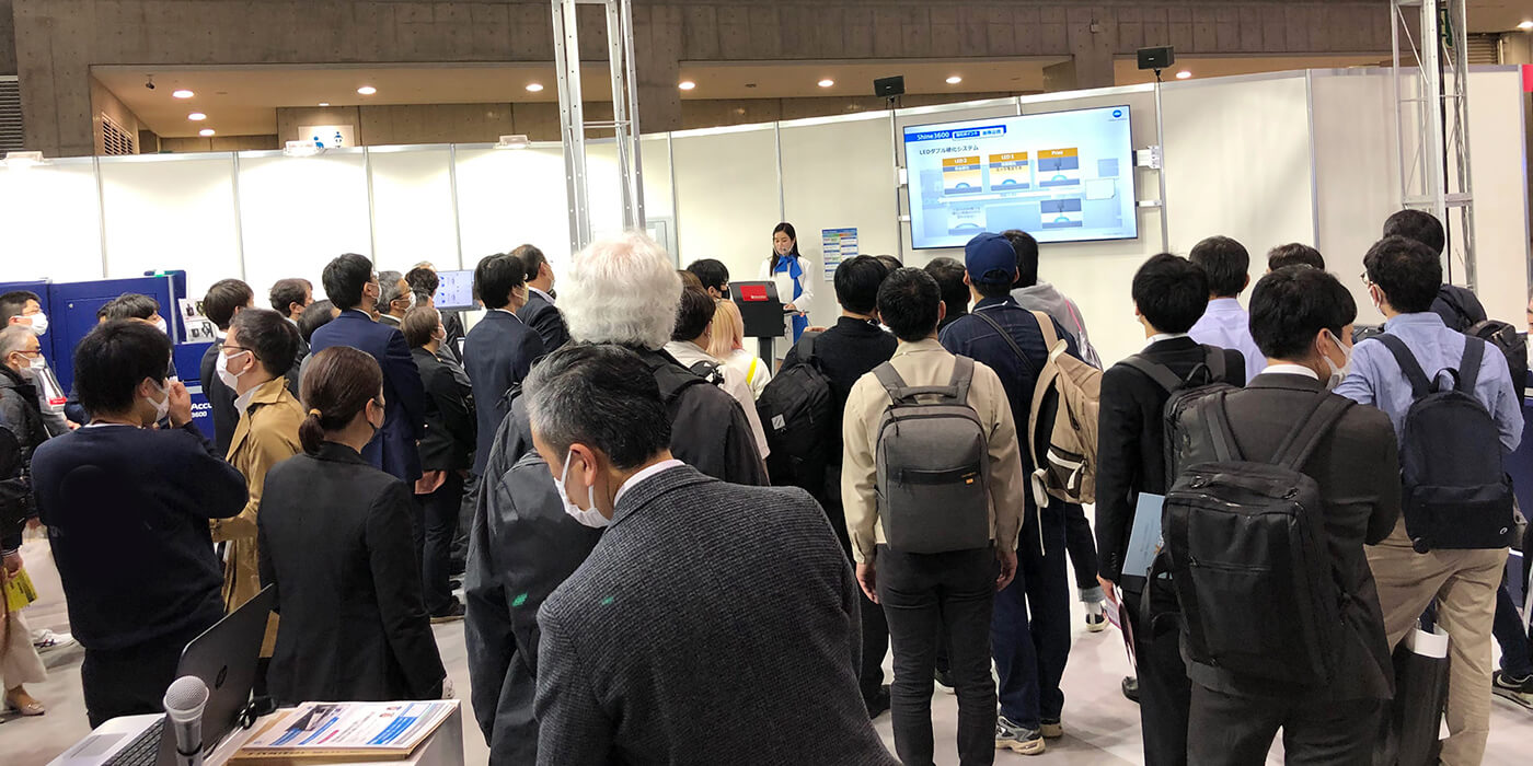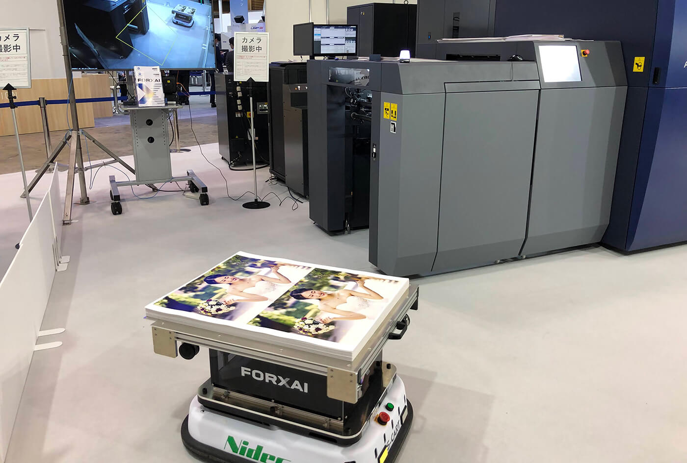 さらにコニカミノルタブースでは、コニカミノルタが持つ画像IoT/AI技術とパートナー(NEC)の持つ技術を掛け合わせた印刷工程におけるAMR制御(自動搬送ロボット)のデモンストレーションも実施。印刷現場への安全で効率的な自動化を提案しました。