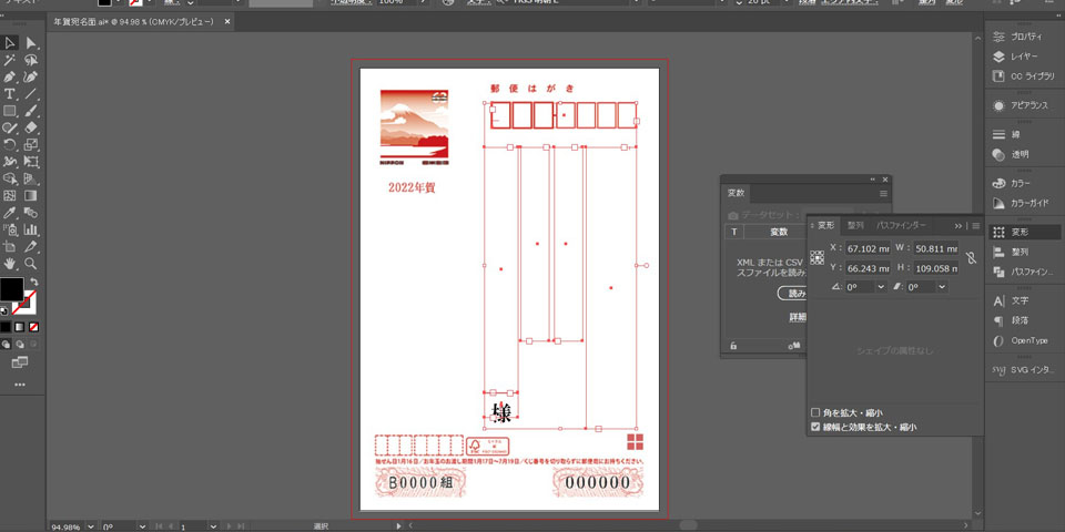 Illustratorの変数パネルを使用して、大量の挨拶状や年賀状の宛名を効率的に作成する手順をご紹介します。変数機能を活用することにより、数十件を超す宛名データがあっても効率よく印刷準備を進められます。