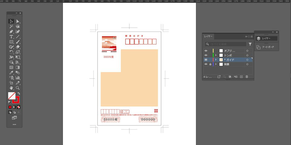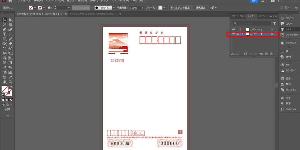 ※背面にはがきのテンプレートを配置している場合は、レイヤーのロックを推奨