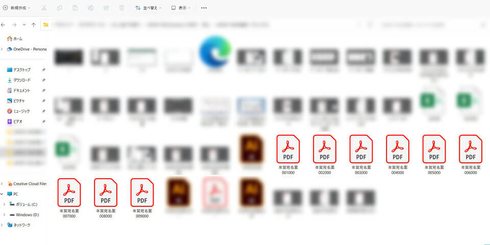 | 手順5 | 指定した保存先へ、全宛名(ハガキ)データのPDFが一括で保存される。 |
