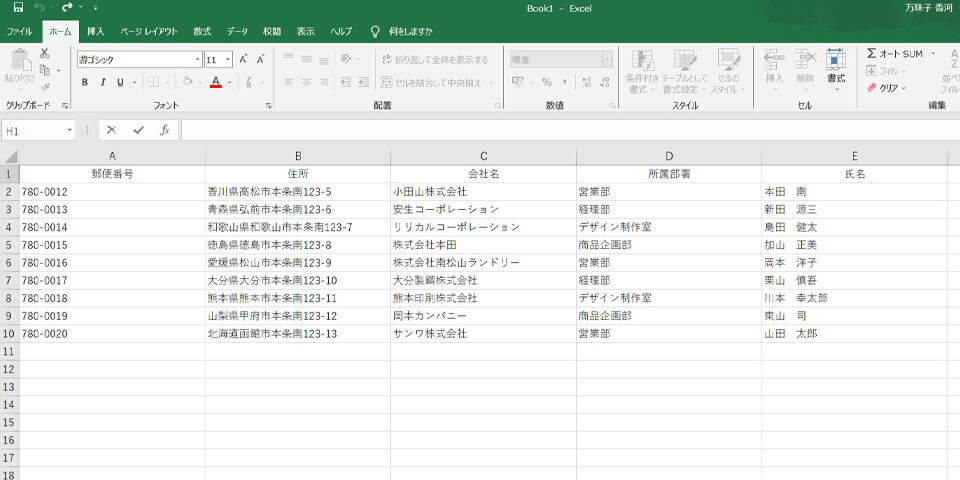1. Excelで住所録のデータを作成