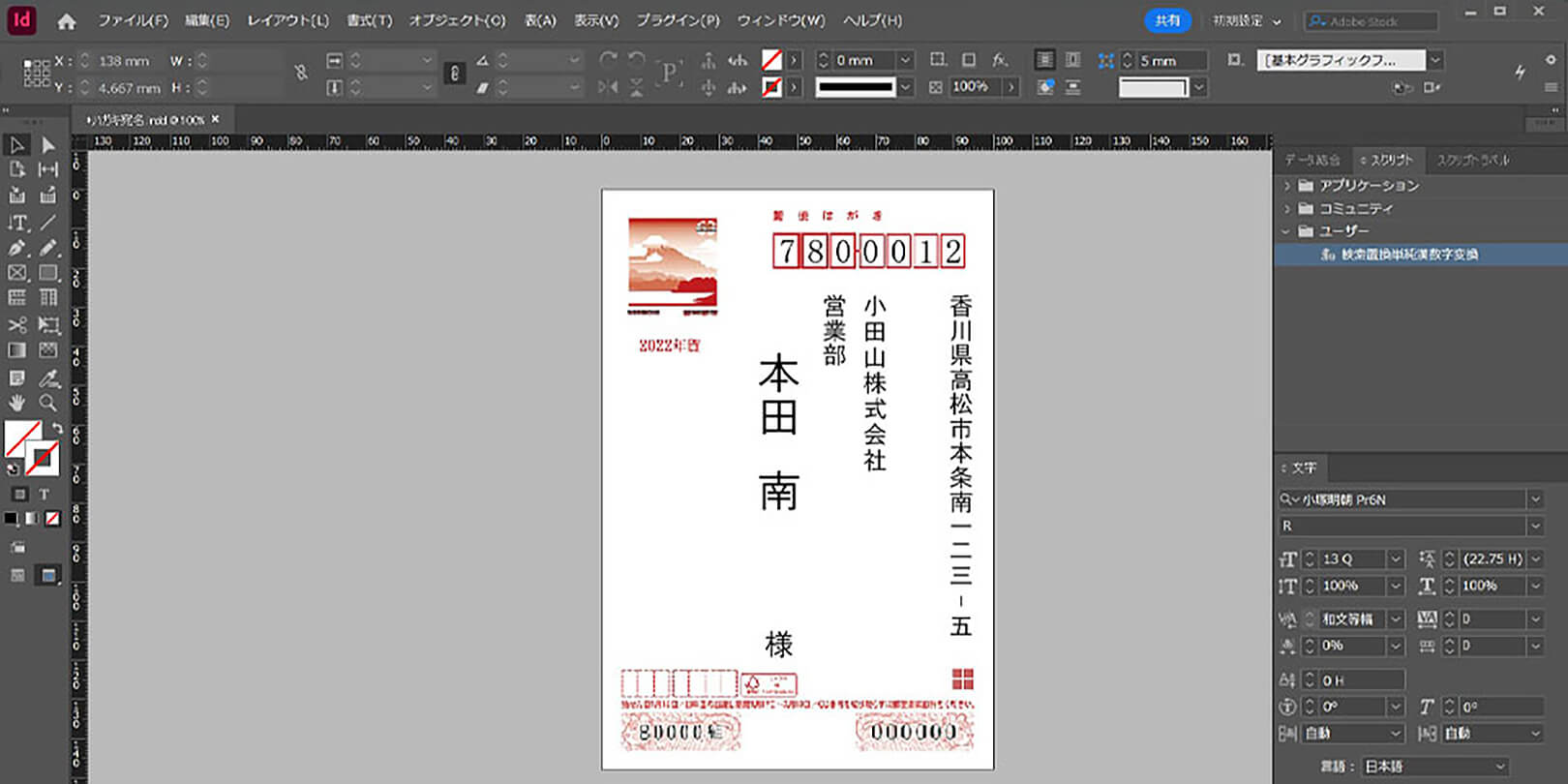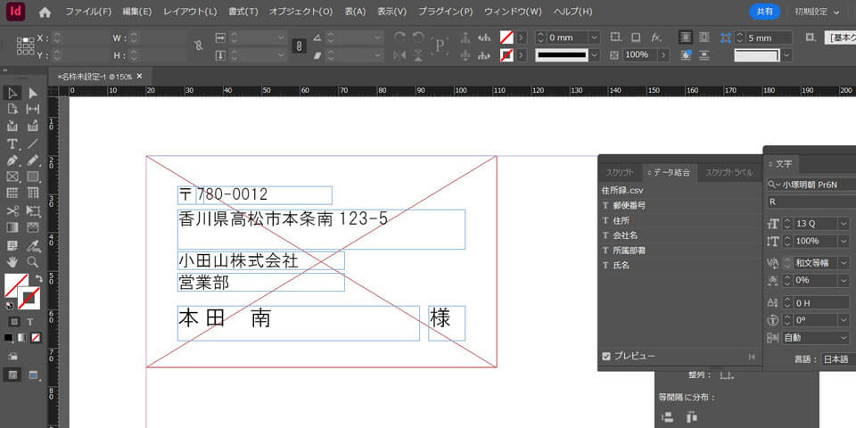 InDesignで郵便物の宛名を作る手順