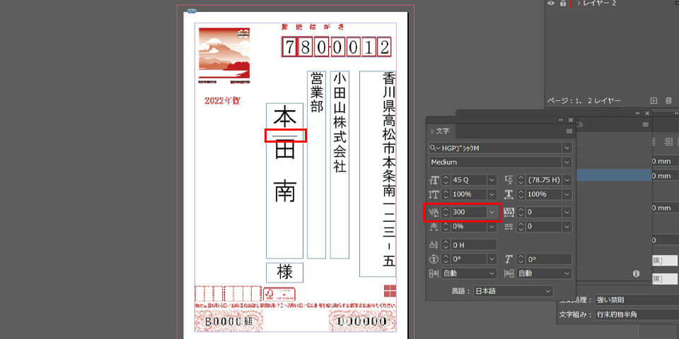 文字の間隔を調整することで宛名が見やすくなり、レイアウトも美しくなります。InDesign上で字送り・カーニング・行間を調整する方法についてご紹介します。