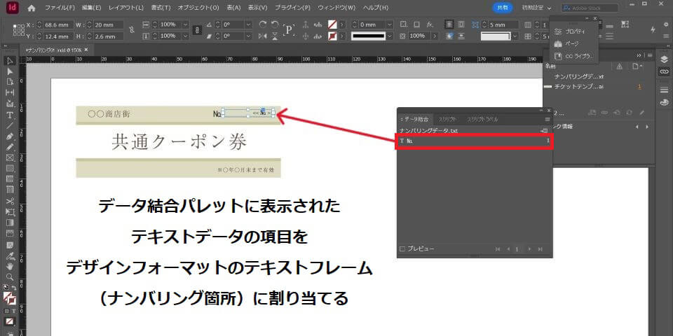 InDesignのデータ結合を活用したナンバリングは、以下の手順で行います。
