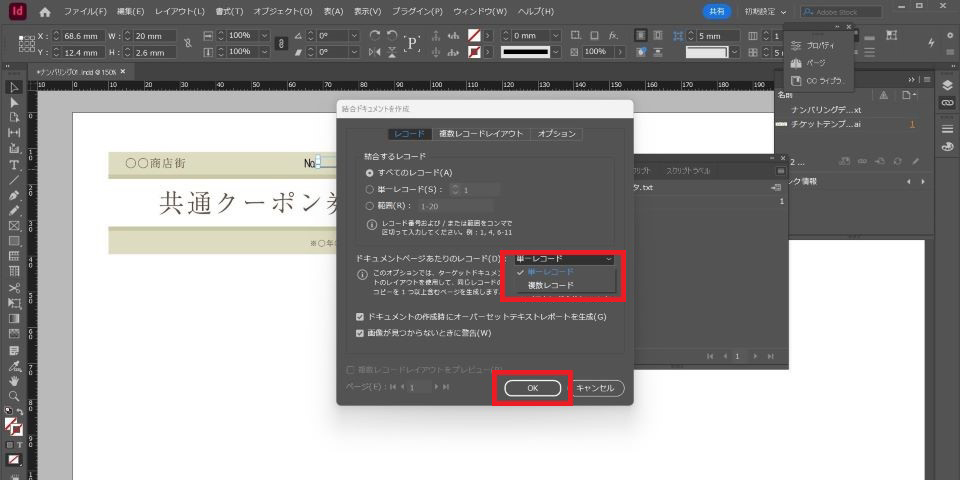 1. 印刷物の制作データとナンバリングに使用するテキストデータを用意する