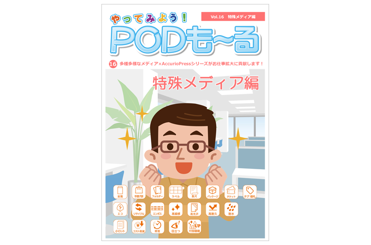 この記事で紹介したコニカミノルタ「PODも~る」でも取り上げている封筒、中綴じ、特殊メディアなどの新たな印刷物に取り組んでみてはいかがでしょうか。「PODも~る」では、図と写真入りで印刷準備から生産完了までの流れを解説しており、実際の印刷で試すことができます。また、デジタル印刷機の導入を検討している際にも、具体的な生産イメージを持っていただけます。ぜひ、「PODも~る」を無料ダウンロードしてご活用ください!