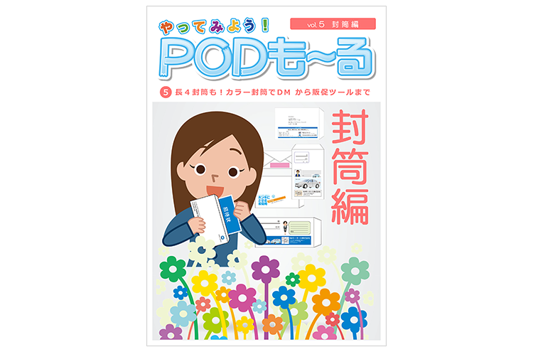 PODも~る「封筒編」では、デジタル印刷機に専用の封筒ユニットを組み合わせて、角2から長4サイズまでの封筒印刷を行う方法を紹介しています。デジタル印刷による封筒印刷は、顧客ごとに違う宛名印刷において強みを発揮します。