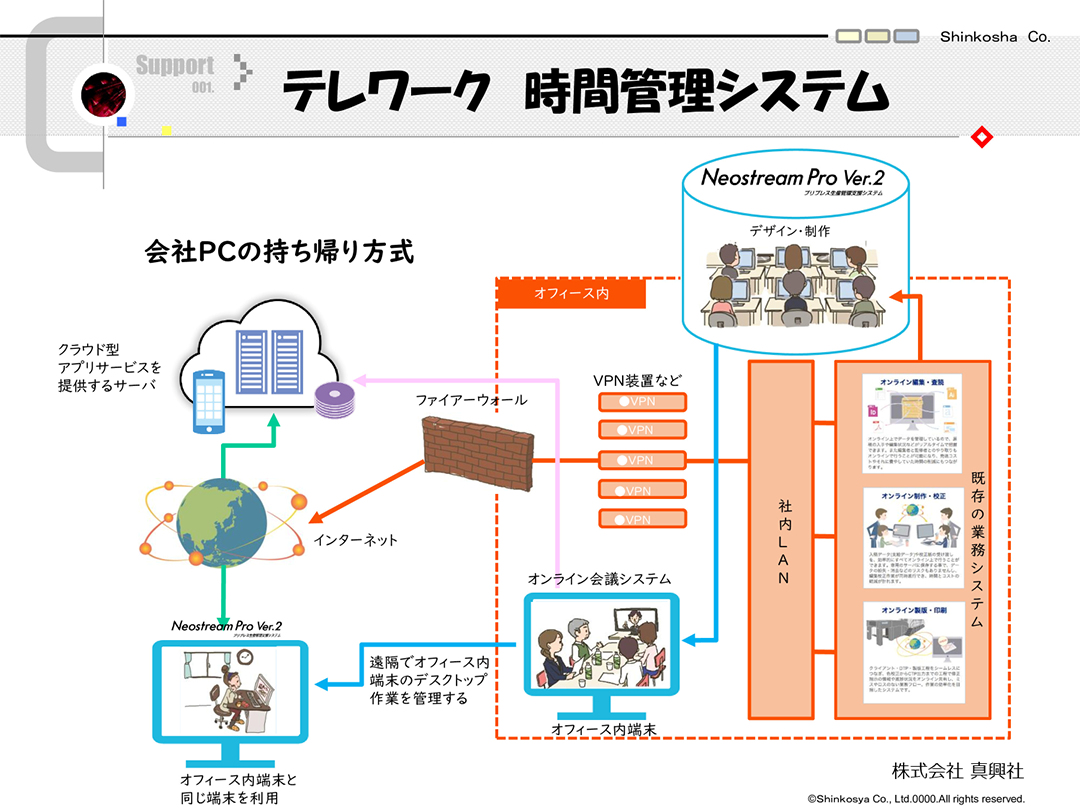 印刷業においても、テレワークや在宅勤務が常態化することを前提にインフラ強化を図り、非対面営業や社内業務のリモートワーク化に取り組んでいく必要があります。テレワークや生産性向上は、働き方改革の施策にもなります。
