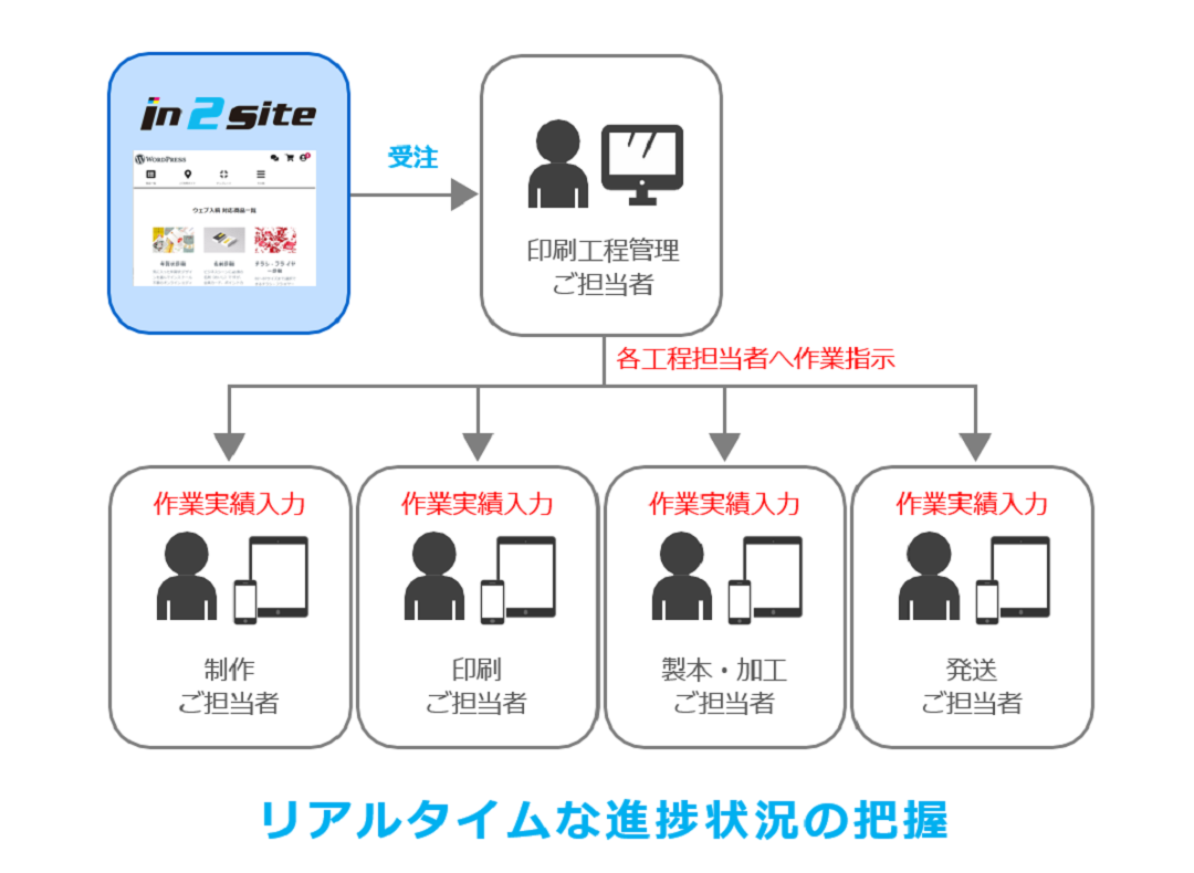 「in2site」には、新規開拓営業を補う側面もありますが、受注から印刷、発送までを一元管理することで、生産過程を効率化できるメリットもあります。