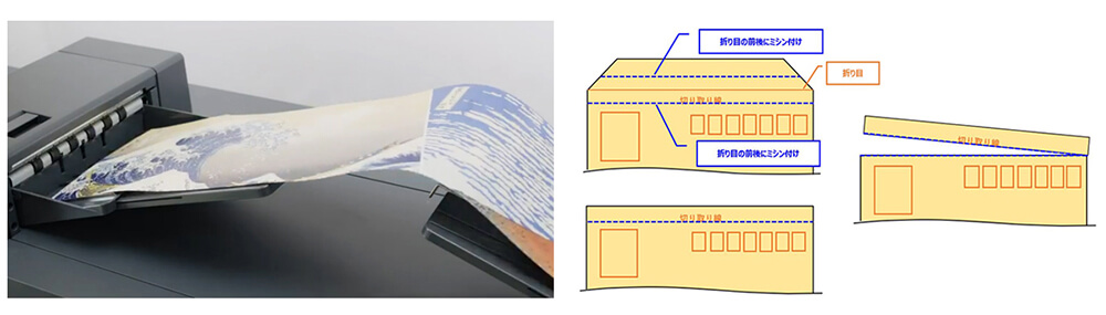 フルブリード加工の長尺ポスターや、ハサミがいらない封筒の切り取りミシン目加工