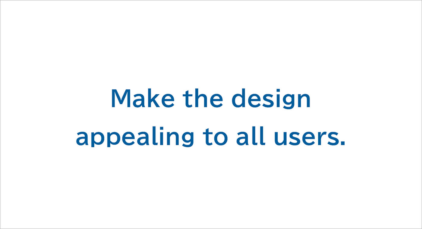 Make the design appealing to all users. = すべての利用者にとって魅力的