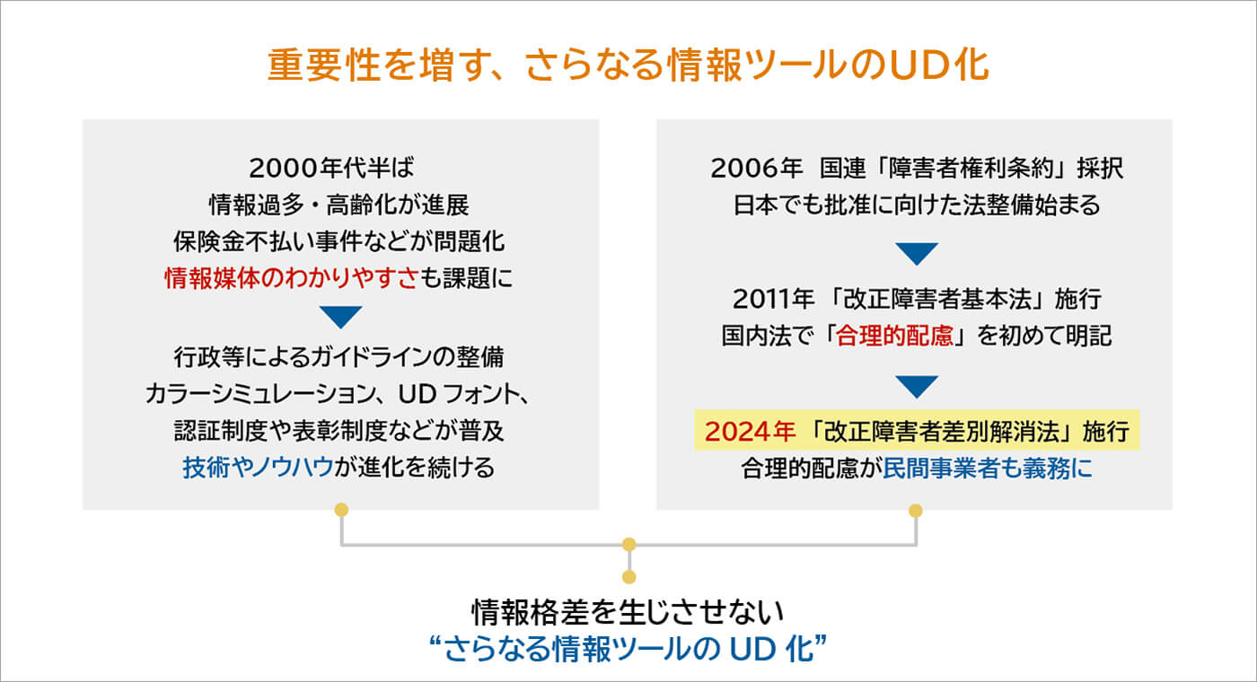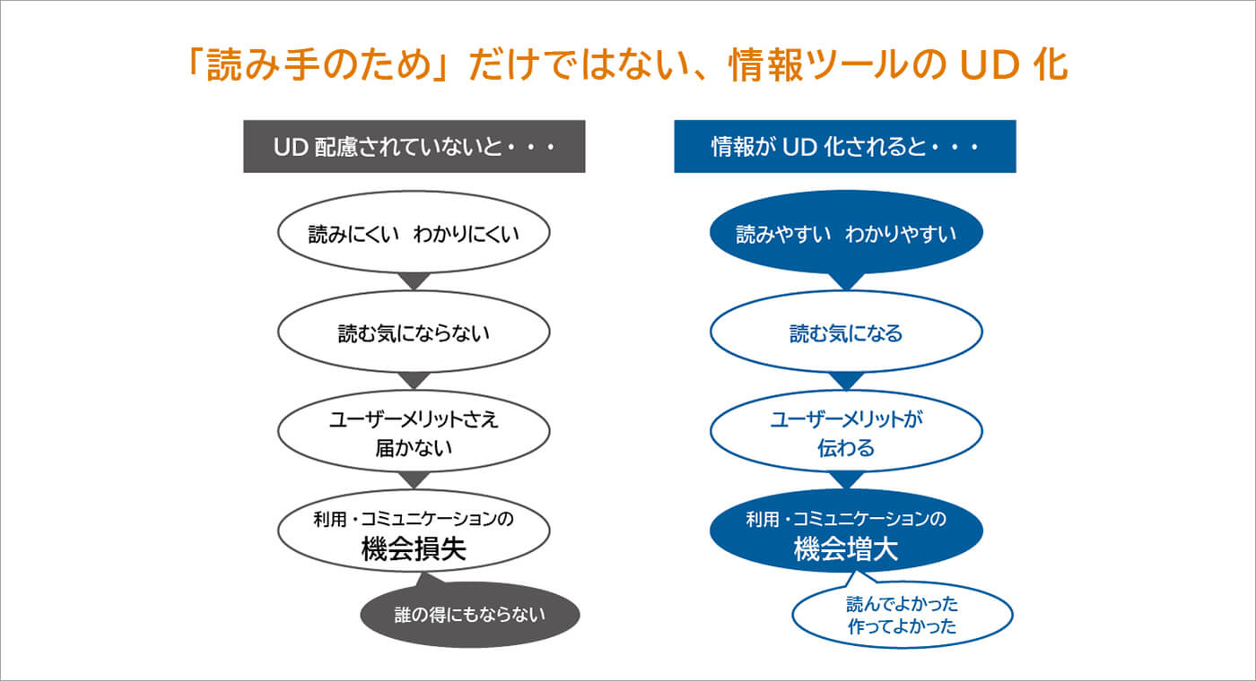 さらにいえば、情報のUD化は、そこで伝えるモノやサービスの開発から始まるあらゆる投資を最大化するための最後のひと押しととらえるべきでしょう。