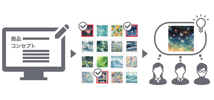 お客様からのデザインのご要望をシステムにインプットする事で、イメージの候補を表示。デザイン受注時の意思疎通に画像生成AIを活用することで、お客様・デザイナーとのより早く正確なイメージ共有を可能にし、デザイン制作工程の効率化を図るツールをご紹介します。