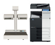 原稿を上向きにしたままコピーが可能なA3対応カラーブックコピーシステム。一般書籍や厚みのある原稿も、タッチパネルにより簡単に操作することができ、原稿曲がりや文字縮み補正、綴じ部影除去、指消し、枠消し等のブック補正機能により綺麗に出力することができます。また、出力部は一般の複合機としてもご利用いただけます。