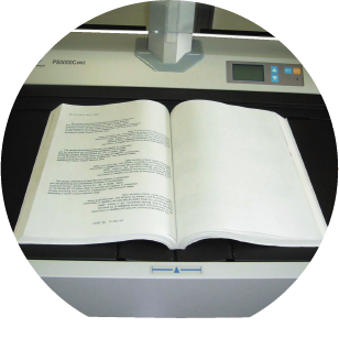 バインドされた大量の資料をばらすことなくスキャニング。ページをめくるだけですばやくデーター化できます。
