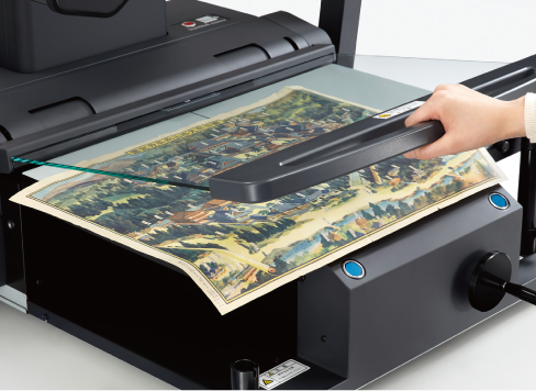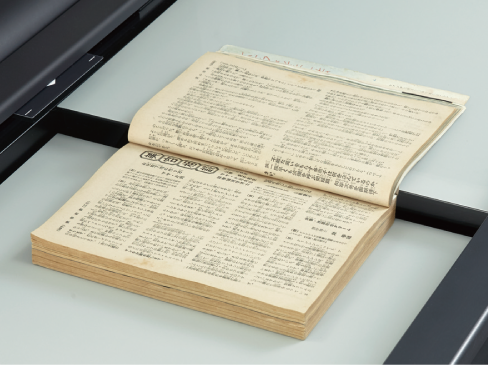 取扱いの難しい貴重な文献や分厚く重たい書籍も、原稿を押さえる必要がなく、無理な荷重をかけずに上向きでセットしたまま、原本を傷めることなく快適で効率的なスキャン作業が行えます。