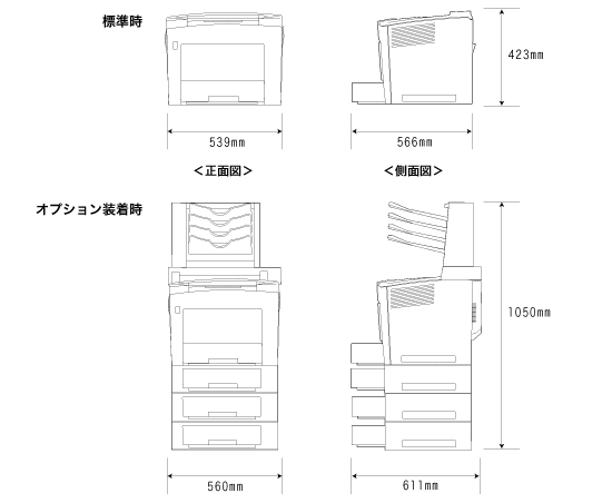 給紙容量 標準: 標準カセット:550枚、手差しトレイ:250枚