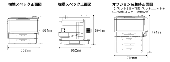 | オプション | 500枚給紙ユニット×最大2段(1,000枚) | |