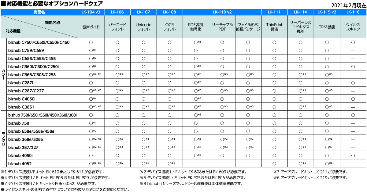 bizhub 287 /227 はライセンスキット LK-116、LK-117には対応していません。